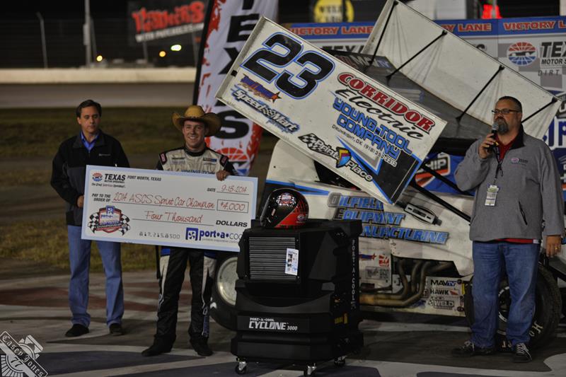Bergman maneuvered from sixth to garner the Lucas Oil ASCS National Tour triumph at Texas Motor Speedway on Saturday.
