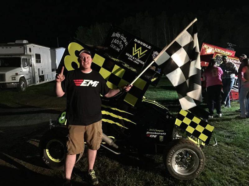Opening night is in the books at Merritt Speedway in Lake City, MI. From a packed pit area with more than 130 cars, Justin Ward stood with the checkers at nights end next to his HENCHCRAFT car.