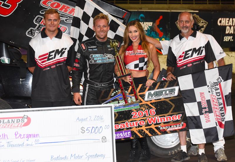 Inside Line Promotions – BRANDON, S.D. (Aug. 9, 2016) – Seth Bergman returned to Victory Lane on Sunday at Badlands Motor Speedway following a successful performance during the 26th annual Arnold Motor Supply 360 Knoxville Nationals.